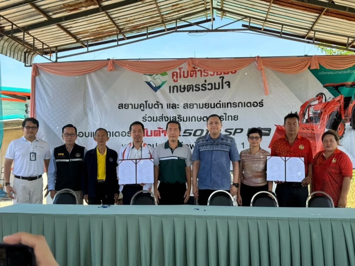 บริษัท สยามยนต์แทรกเตอร์ จำกัด ได้เข้าร่วมส่งมอบเครื่องจักรกลการเกษตรและอุปกรณ์ต่อพ่วง เพื่อส่งเสริมการใช้เทคโนโลยีเครื่องจักรกลการเกษตรของคูโบต้าให้กับกลุ่มเกษตรกร เพื่อใช้ประโยชน์และต่อยอดธุรกิจ ภายใต้โครงการ “คูโบต้าร่วมมือ เกษตรร่วมใจ” ของบริษัท สยามคูโบต้าคอร์ปอเรชั่น จำกัด โดยครั้งนี้เป็นการส่งมอบให้กลุ่มวิสาหกิจชุมชนมันสำปะหลัง ม.10 ต.เพนียด อ.โคกสำโรง จ.ลพบุรี โดยได้รับเกียรติจาก นายเจตน์พงศ์ โชคสวัสดิ์วรกุล ท่านนายอำเภอโคกสำโรงมาเป็นประธานในพิธีส่งมอบเครื่องจักรกลการเกษตรฯ และภาคส่วนราชการต่างๆ เกษตรจังหวัด เกษตรและสหกรณ์อำเภอโคกสำโรง ผู้นำชุมชมกำนัน ผู้ใหญ่บ้าน และสมาชิกกลุ่มวิสาหกิจชุมชนที่มาร่วมแสดงความยินดีกันอย่างพร้อมหน้า นอกจากการส่งมอบเครื่องจักรกลฯ ได้ร่วมกันปลูกต้นไม้เพื่อเพิ่มพื้นที่สีเขียวช่วยลดภาวะโลกร้อนอีกด้วย