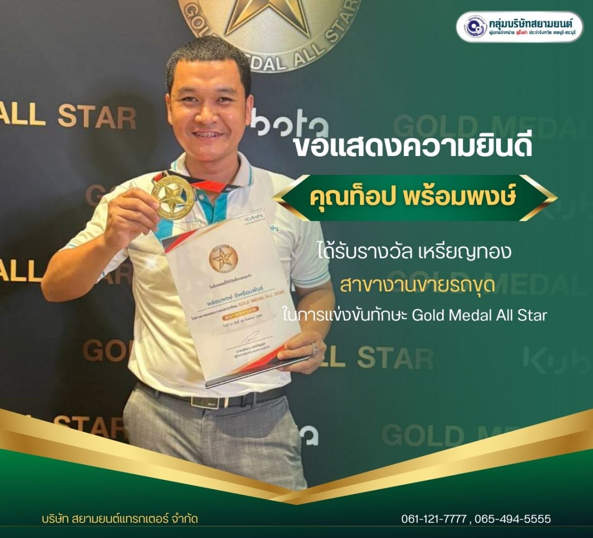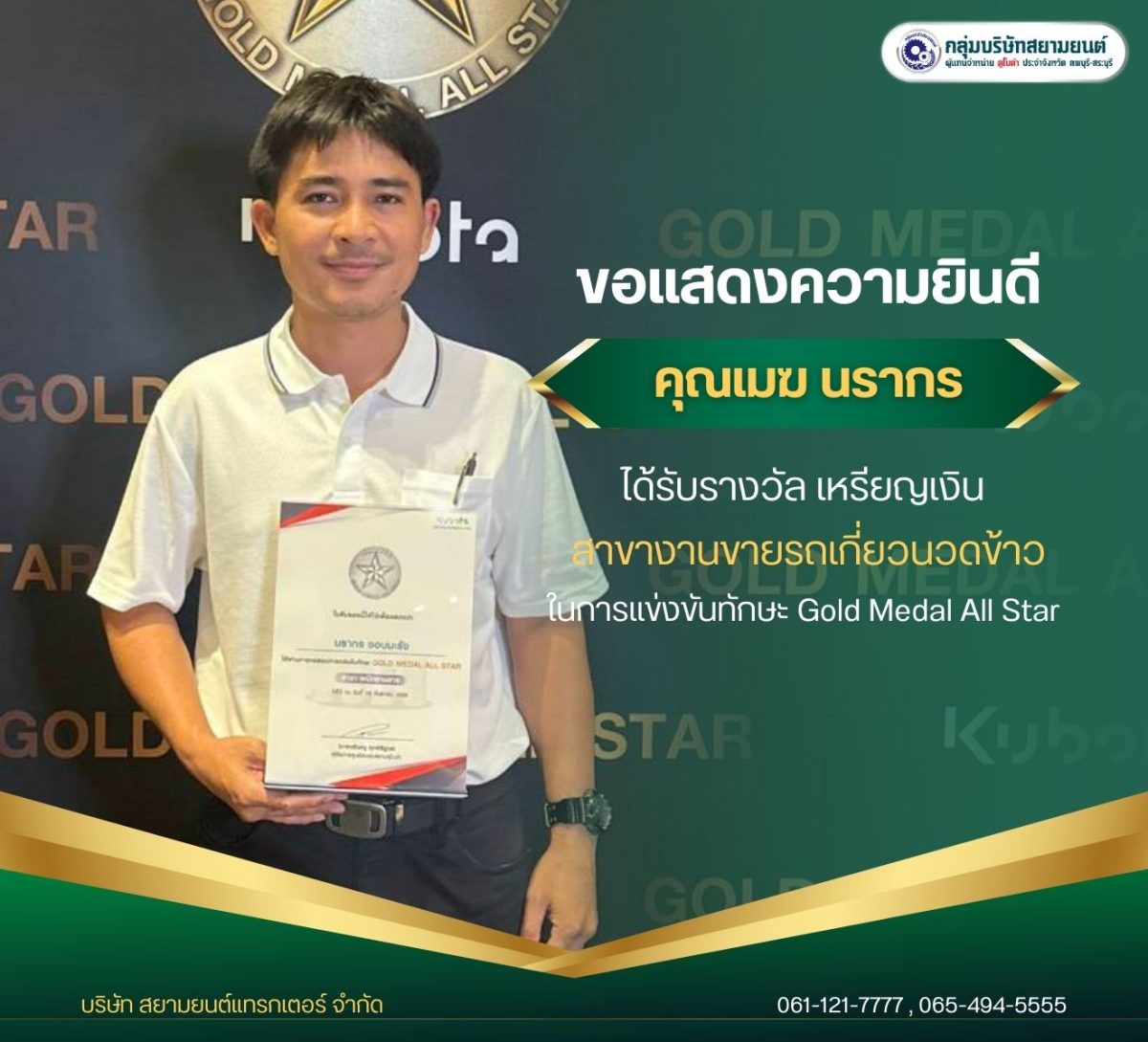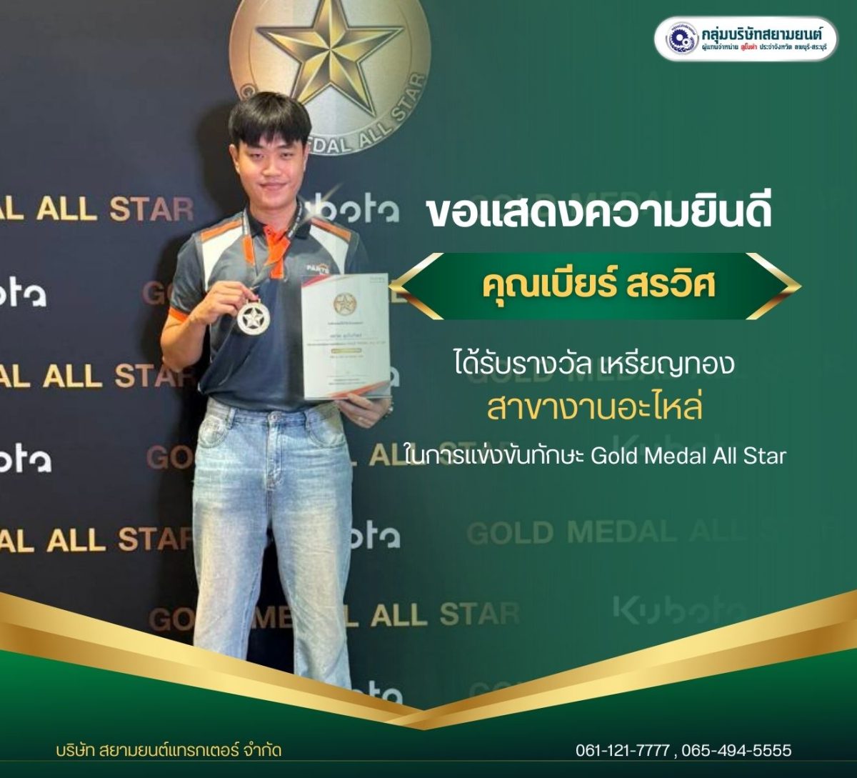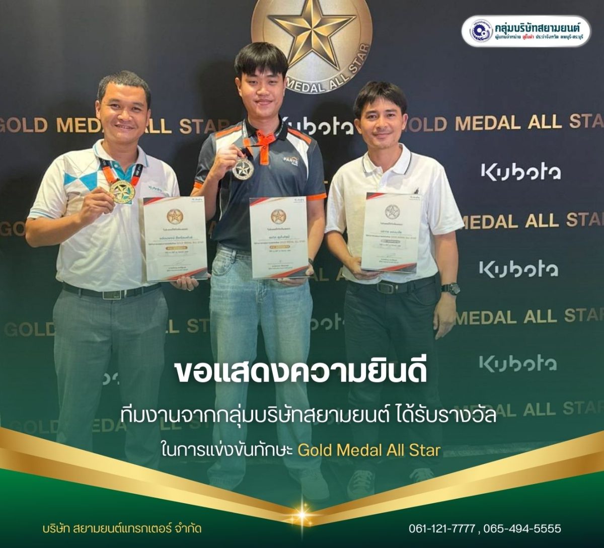 กลุ่มบริษัทสยามยนต์ ขอร่วมภาคภูมิใจและแสดงความยินดีกับบุคลากรที่สามารถคว้ารางวัลเกียรติยศในการแข่งขัน GOLD MEDAL ALL STAR SKILL CONTEST 2025 จัดขึ้นโดย บริษัท สยามคูโบต้าคอร์ปอเรชั่น จำกัด ซึ่งถือเป็นเวทีการแข่งขันทักษะระดับประเทศ ที่คัดเลือกผู้เข้าแข่งขันจากทั่วประเทศ มาประชันความรู้ ความสามารถ และความเชี่ยวชาญในสายงานต่าง ๆ